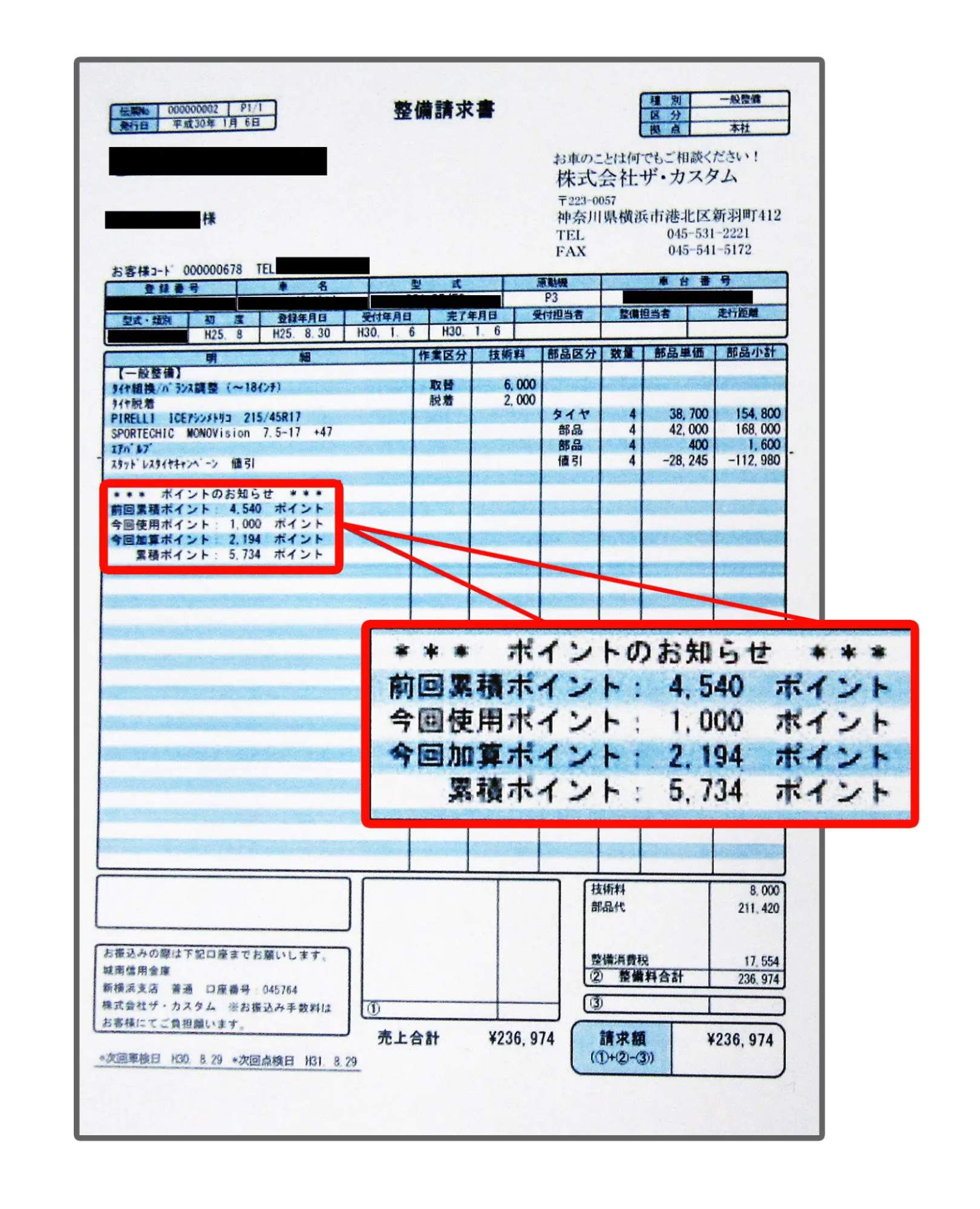 例:スタッドレスタイヤ購入・交換で合計 219,420円(税別) の場合、2,194ポイント獲得